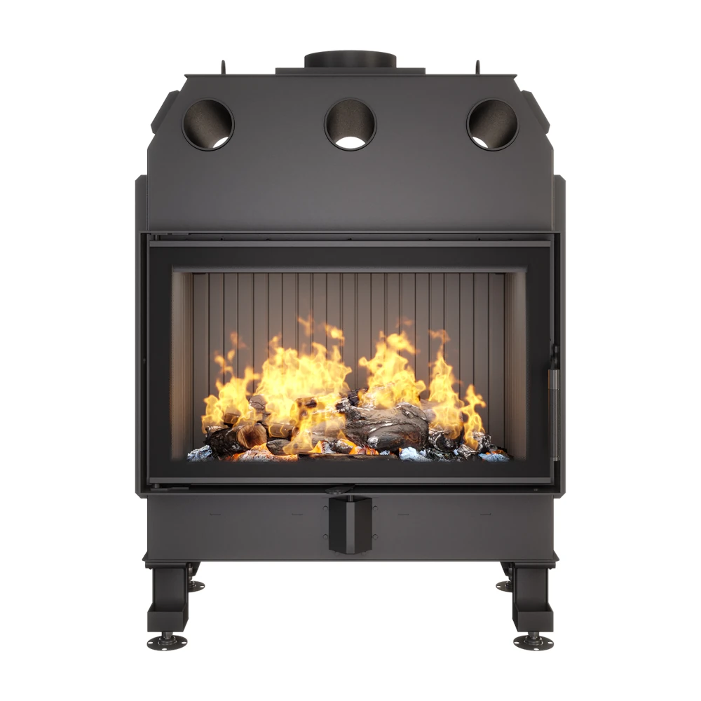 Kogu põlemisprotsessi toetavad värske õhu sissevõtu (125 mm) võimalused nii alt kui ka tagant, mis tagavad ühtlase ja kontrollitud põlemise. Kahekordne deflektor suurendab oluliselt soojusülekannet ja muudab kütmise veelgi efektiivsemaks. Tänu tugevast terasest valmistatud konstruktsioonile ei deformeeru kaminasüdamik ka kõrgete temperatuuride juures ning spetsiaalsed kuumakindlad tihendid annavad täiendava tiheduse. Paigaldajatele teeb elu lihtsaks unikaalne jalgade lahendus/disain, mis muudab nii kaminasüdamiku kui ventilatsioonirestide paigaldamise kiireks ja mugavaks. Tule intensiivsust saab juhtida vaid ühe hoova abil, mis teeb kasutamise eriti lihtsaks ja nauditavaks.